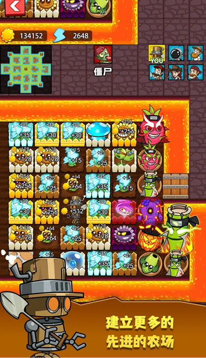 建造超强的植物射手、强化储能的闪电草,当然也别忘了升级你的牧场,它会给你带来大量的阳光!