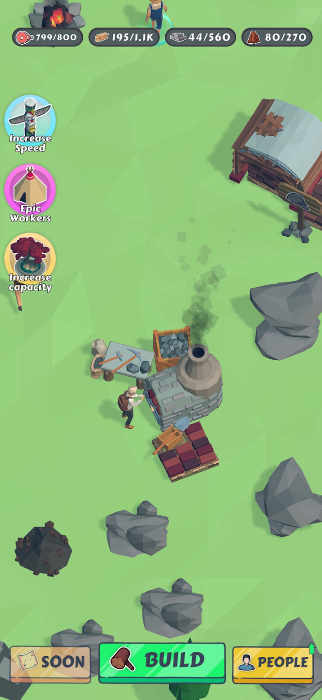 2、制作各种工具来采集更多资源,选择合适的位置建造新的家园,快速提升生活质量。