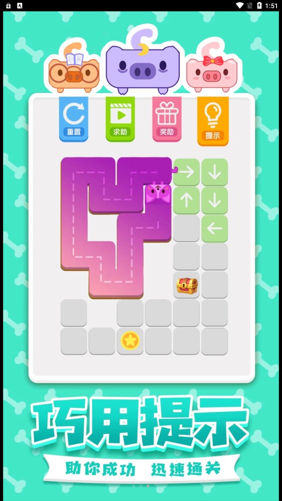 2、玩家在一笔画猪猪游戏里需要用手指控制一只可爱的小猪,一笔不重叠。