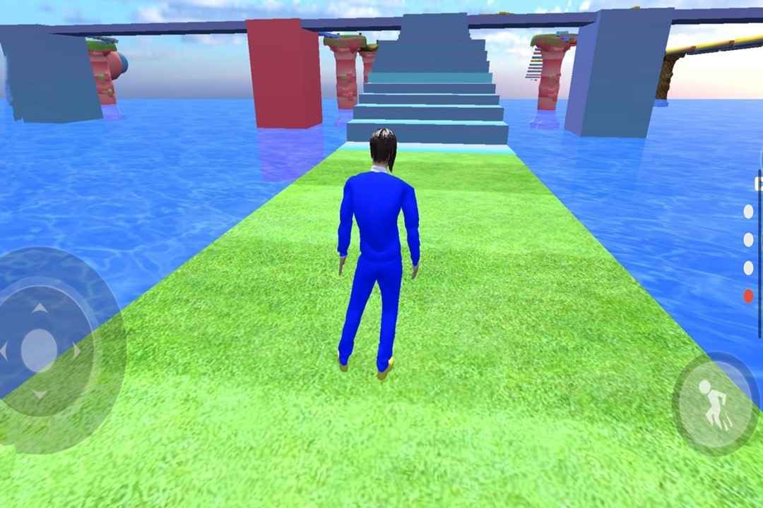 2、游戏中你将扮演蓝色妖姬和他的三位朋友开展接力跑酷大赛;