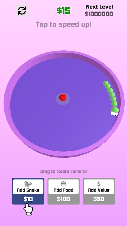 1、内容上是小蛇慢慢靠吃金币升级变大蛇,界面上是靠玩家的游戏机制获得金币;