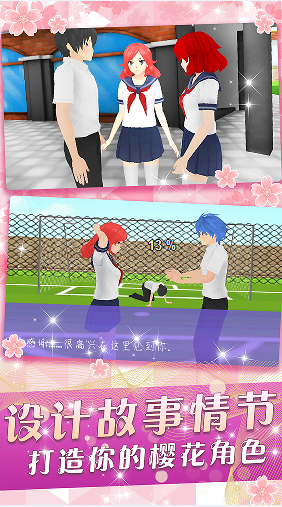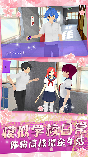 模拟樱花动漫少女在樱花高校中奔跑,和同学好友互动。