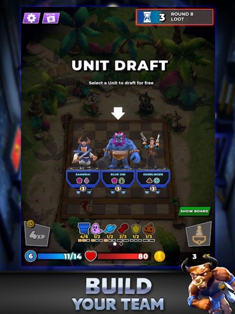 3.主玩法为PVE卡牌构筑,结合16宫格棋子打法,让你来完成无限的对战模式。