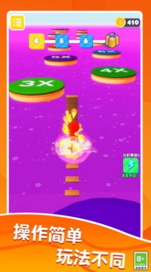 3、在每场比赛中发挥自己跑酷实力,快速超越所有对手,收集最多的砖块到达终点。
