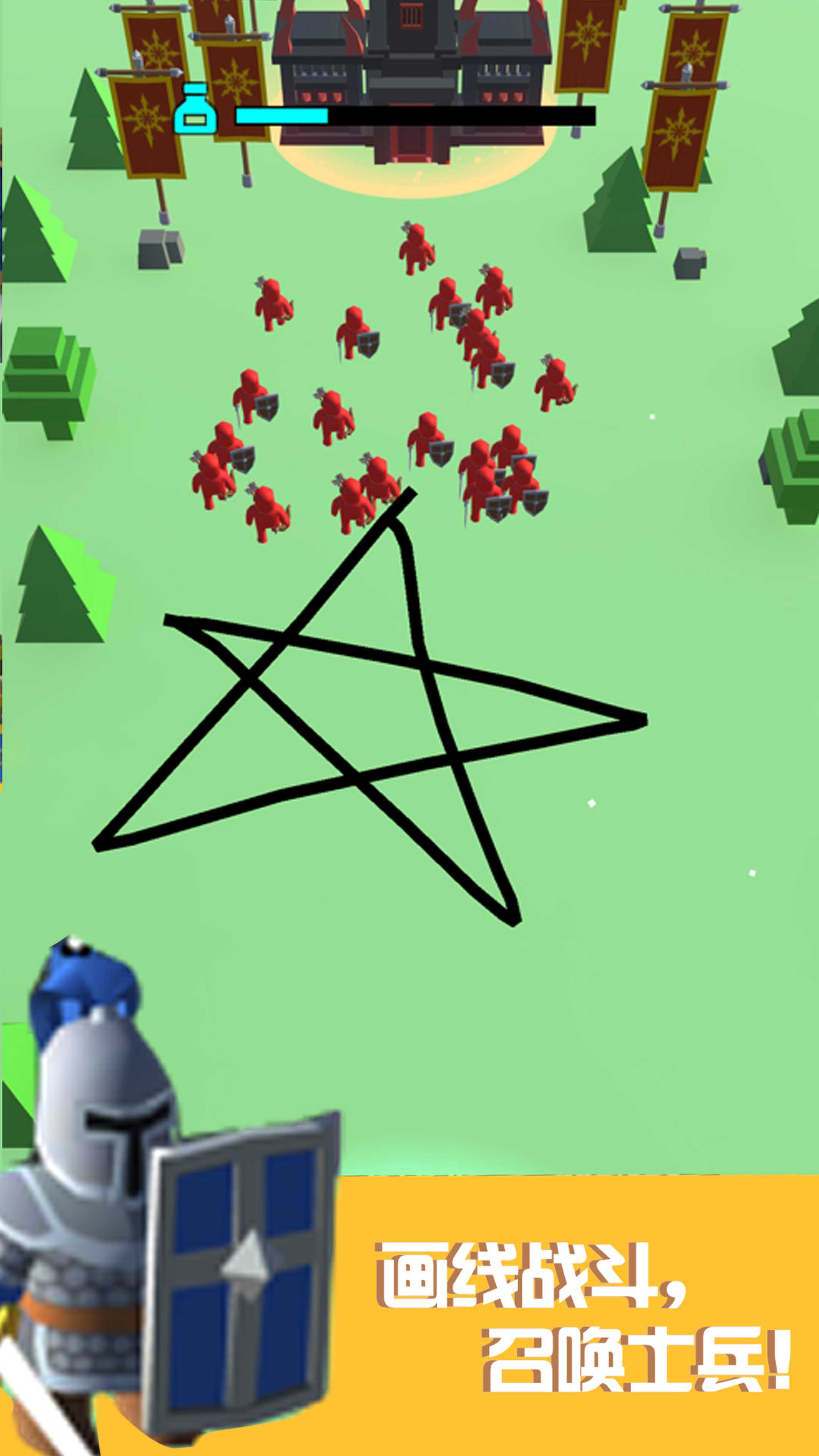 1、在屏幕上绘画对应的图案,召唤士兵及魔法