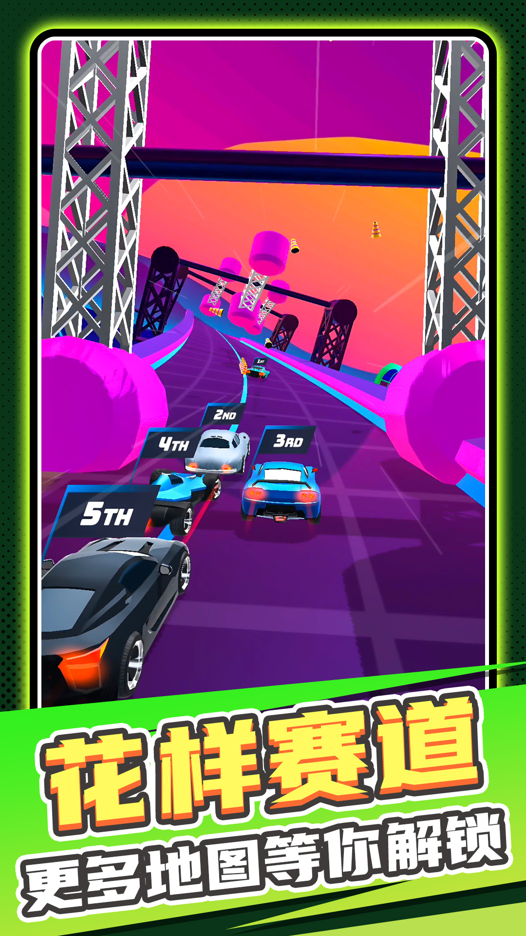1、同一个关卡也能够反复挑战,能够让你在熟悉赛道的基础上不断刷新自己的竞速记录;