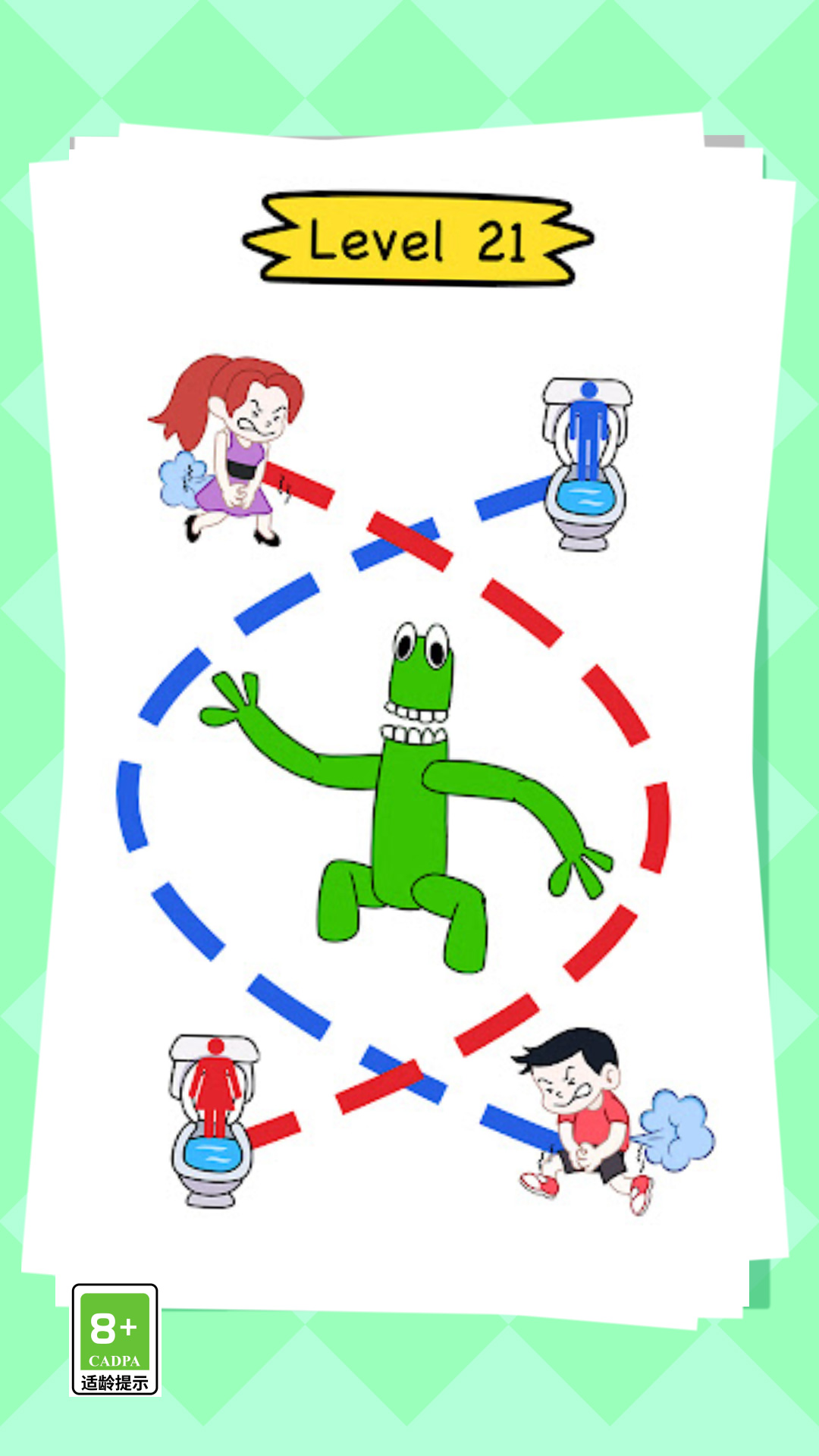 上厕所太难游戏是一款元素十分丰富的手机画线闯关类的游戏,并且这款游戏还有着非常多不同的游戏乐趣呢,你需要快速的画线将游戏内的角色寻找到厕所哦,这样的话才可以让你挑战更多的游戏关卡呢,并且游戏当中还有着很多的关卡可以来挑战,重要的是游戏难度还是很高的,对自己有信心的话就来下载体验吧。