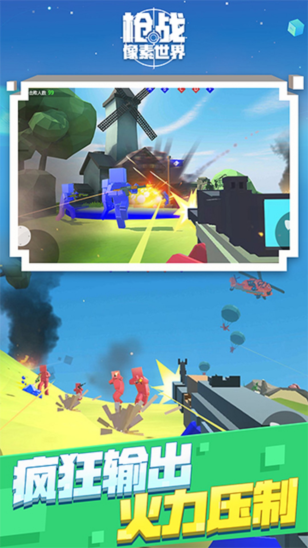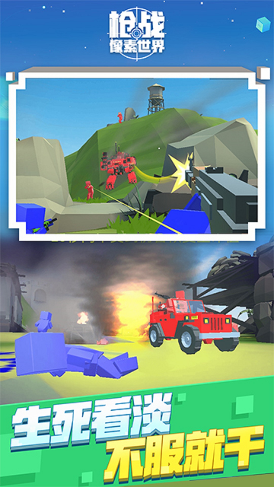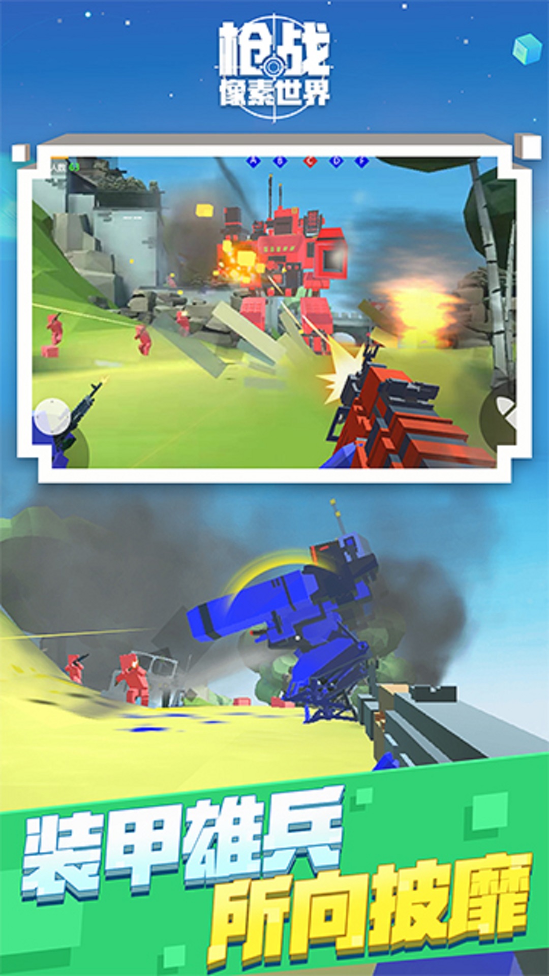 1、像素世界的射击作战,竞技场挑战冒险很刺激,大家可以一起玩。
