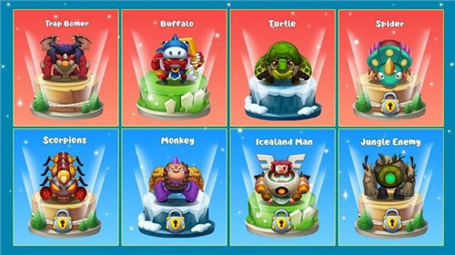 3、玩家可以使用不同的威力的炸弹,在各个关卡场景里面不断的去对战,通过扔炸弹的方式不断的去解锁很多的内容。