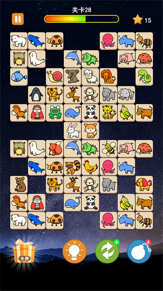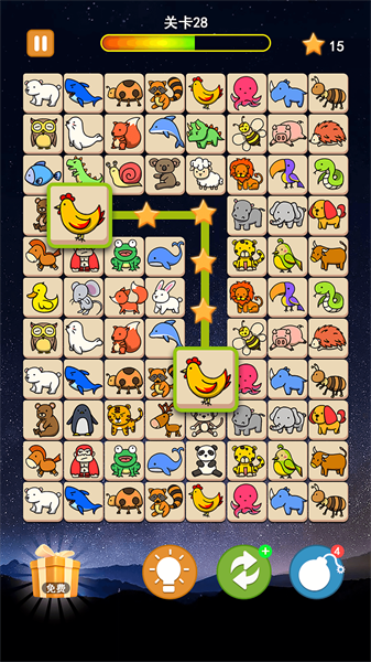 2.成功将全部可爱的小动物们连线消除,即可完成下一个关卡;