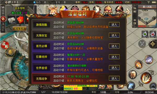2、每个地图每十分钟刷新一波福利怪物,爆高额货币材料。