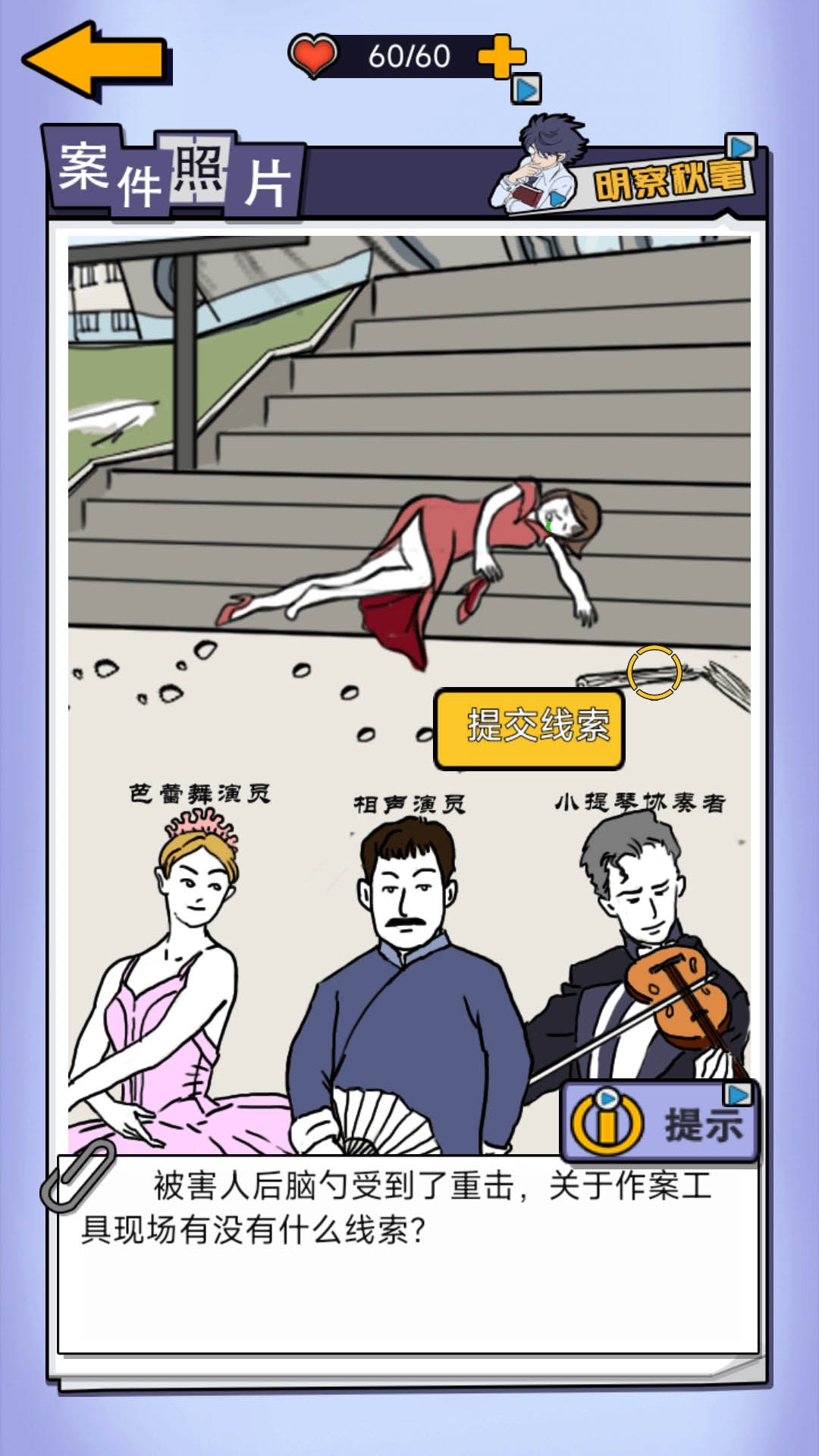2、随着关卡难度快速提升,案件将会变得更加复杂,出场的人物数量也会不断增多。
