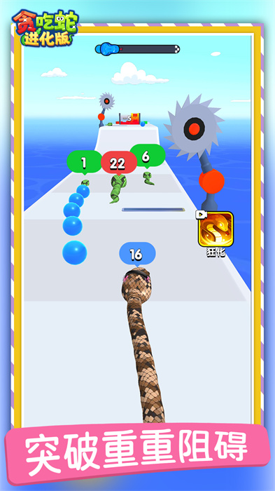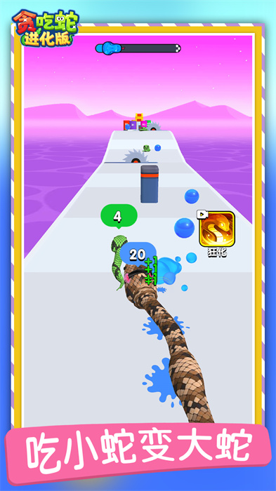 贪吃蛇进化版游戏是一款经典好玩的手机贪吃蛇元素的游戏,玩家们在这里可以去操控着贪吃蛇不断的去进行吞噬起来,在赛道上面有着非常多的小蛇可以去进行吞噬呢,吞噬后就可以让你变得更加强大起来,能够很好的去通过更多的游戏关卡,游戏体验起来的话也是非常的轻松,快来下载体验吧!