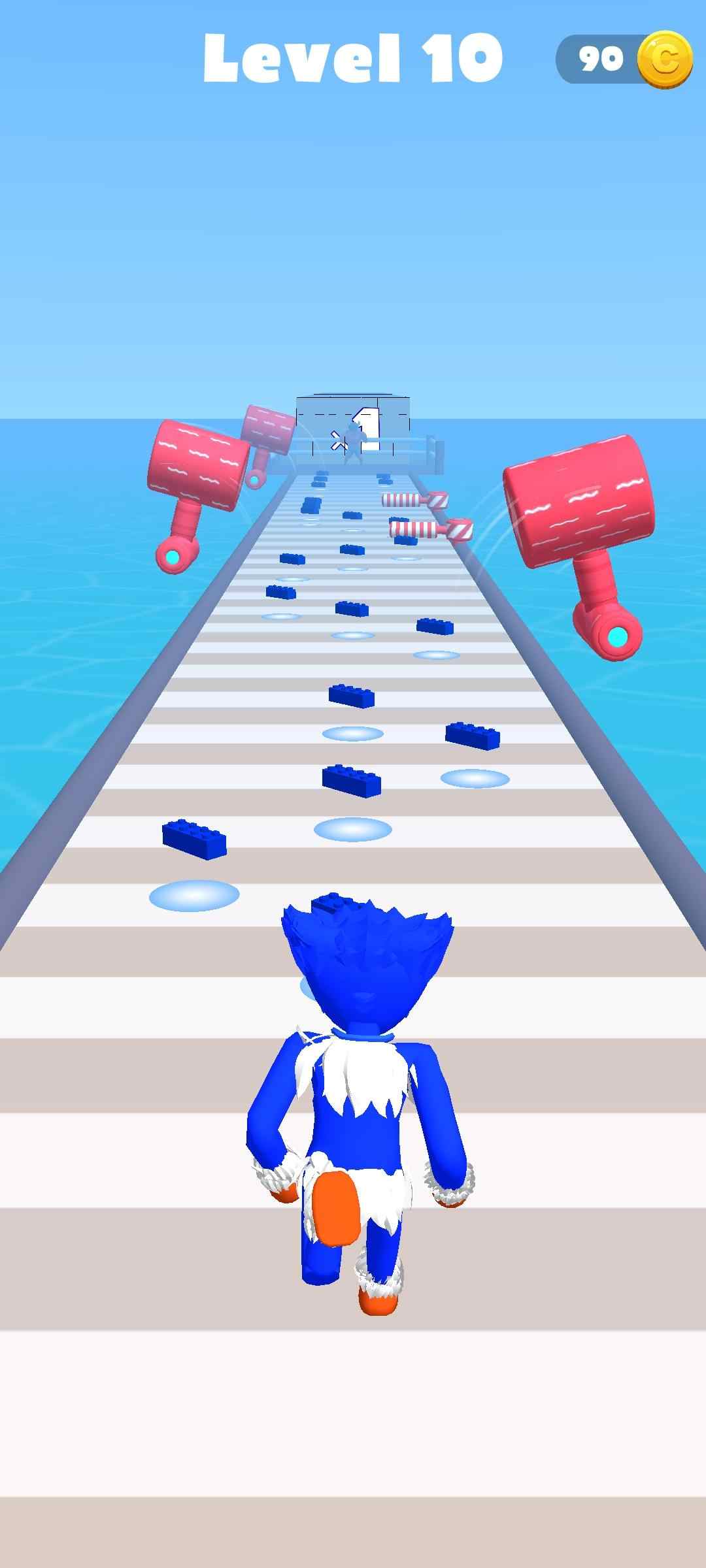1、控制小人在赛道上跑动,尽可能多地收集玩具的部件。
