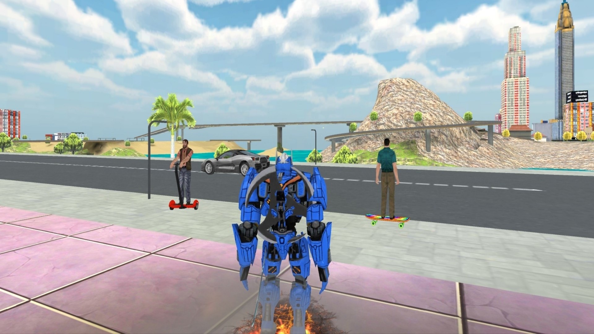 1、精彩汽车人对决正式开启,你将在城市中参与激烈战斗,不能让外星人摧毁城市。