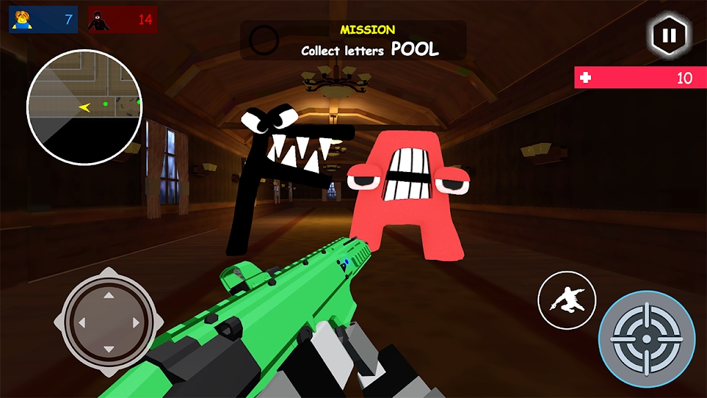 字母射手生存FPS是一款很好玩的射击游戏,你需要控制游戏内角色开启各种精彩的射击模式都是相当刺激的,游戏采用了第一视角让你的游戏体验感更好,这里有着多种射击模式相当的热血,你可以开启自由的对战,游戏玩法十分的丰富,十分的解压,赶紧来下载试试吧。