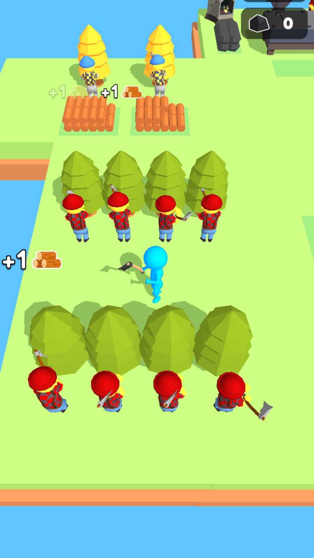 建立木材帝国,建造你的森林!为了可持续地采伐树木,您需要雇用伐木工人来种植森林!