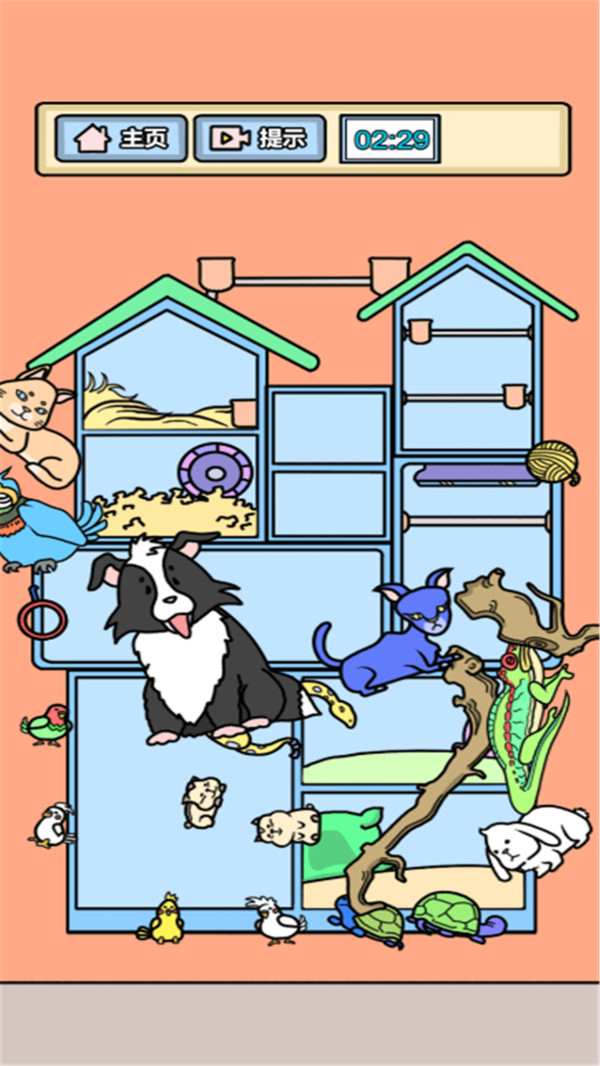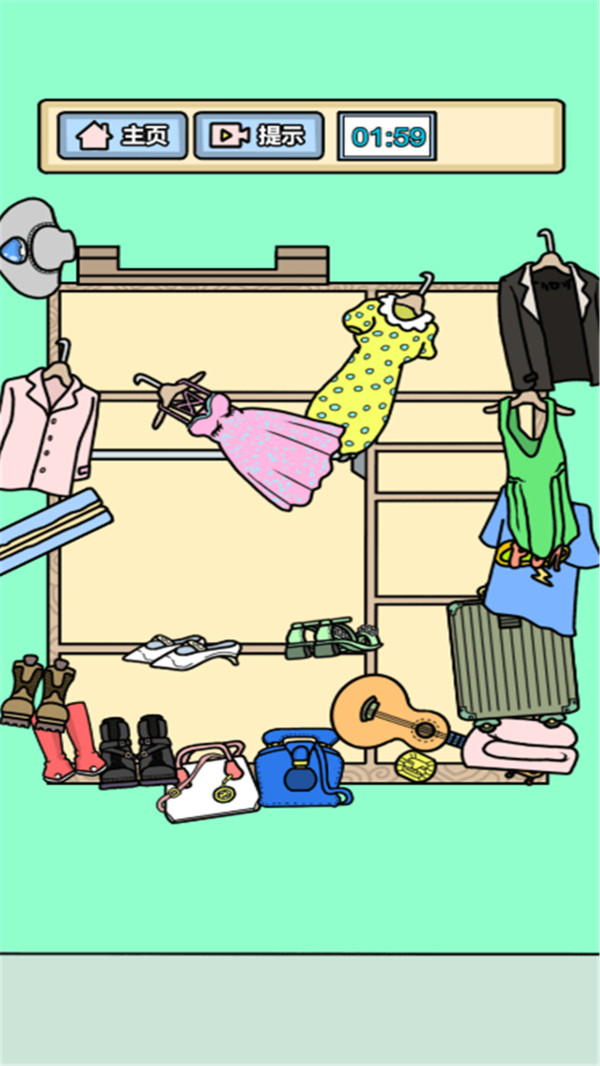 1、在指定的时间内完成收纳任务,将所有的物品归纳到指定的位置,成功的通关;