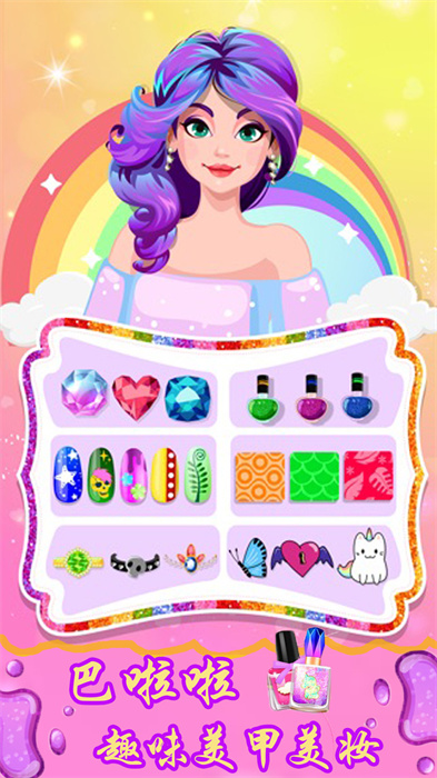 巴啦啦趣味美甲美妆是一款好玩的美妆游戏,这里的玩法十分的有趣,喜欢装扮类游戏的玩家不要错过了,你可以在游戏内尽情的装扮指甲,这里有着许多好看的指甲油,你可以根据自己的喜好来给它上色,非常治愈的一款游戏,很适合休闲的时候娱乐,赶紧来下载试试吧。