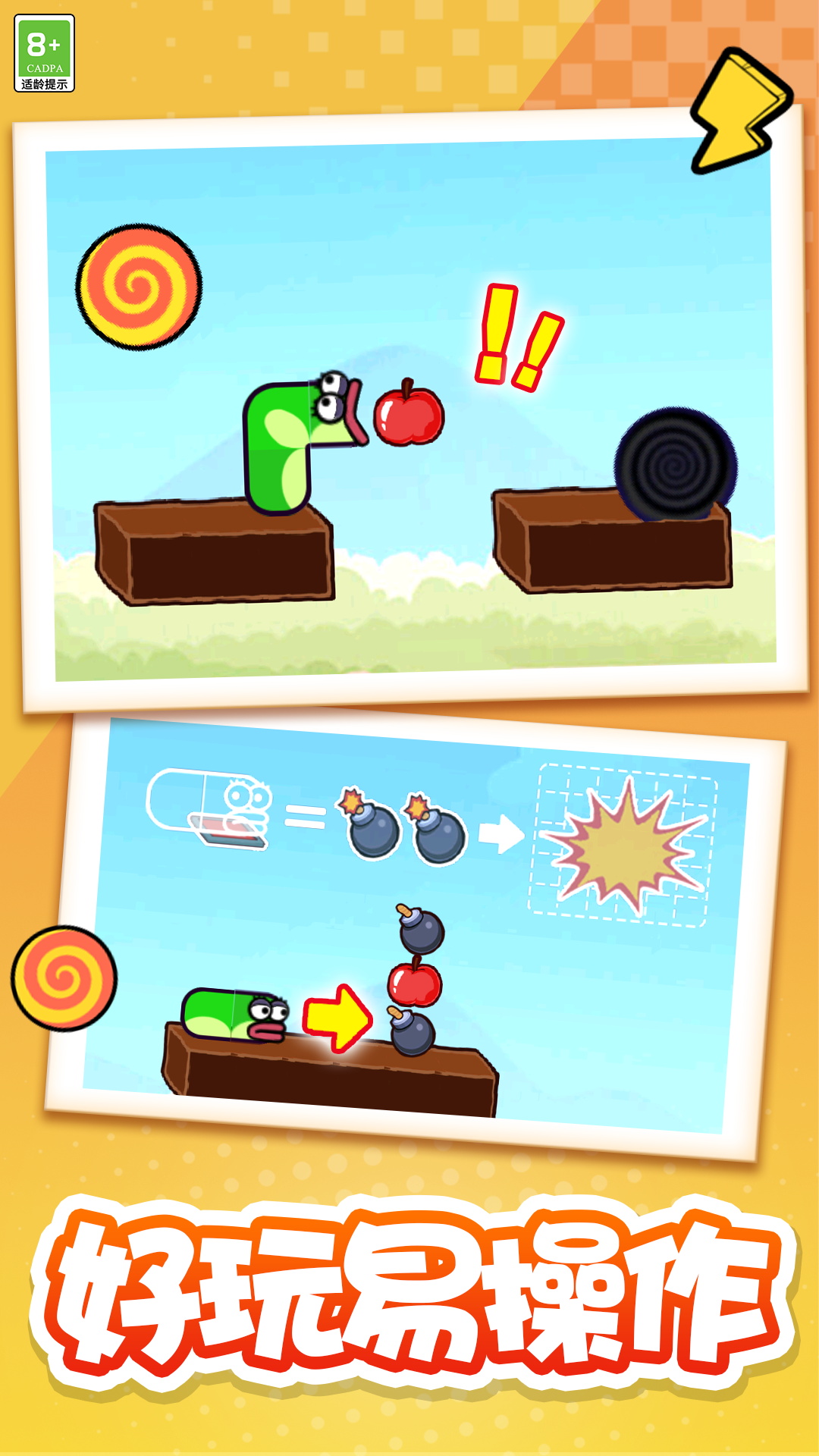 2、开心吃糖果,乐趣无穷的时刻,每一次的壮大,你的分数也会随之增高。