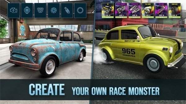 3、你可以在更多的比赛中展现自己的能力。汽车可以自由升级改造,全面提高汽车性能。