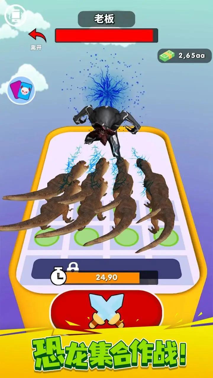 2、多玩法都能来体验的,合成玩法很简单的,各种恐龙会出现在游戏中,合成后的恐龙更强;