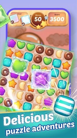 1、一款非常解压的甜品消除类游戏,玩家需要消除三个或更多相同颜色的果冻块才能获得积分。