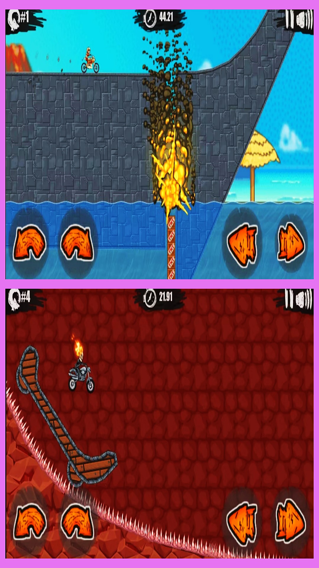 1、横版特色的越野摩托车驾驶玩法的手游,展示摩托车的技巧。