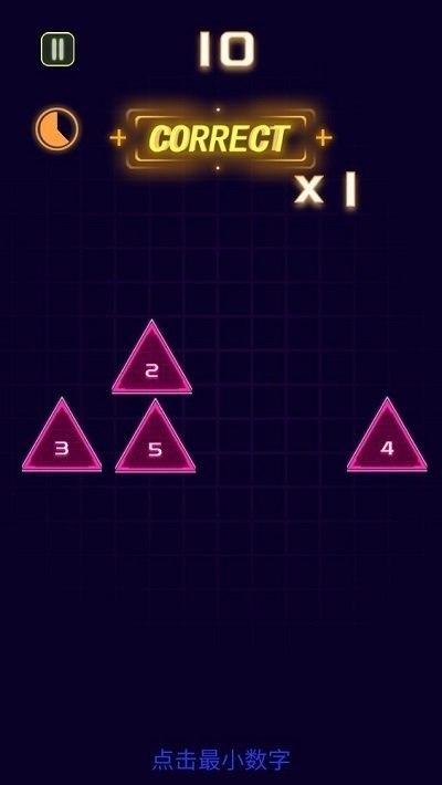 玩家需要根据关卡的要求点击屏幕,随机出现很多发光的数字,在规定的时间内根据大小顺利点击,就可以得到相应的分数。