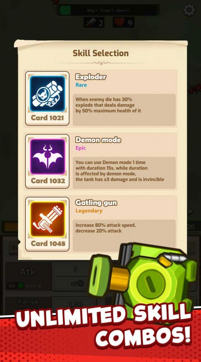 1、防御塔有不同的攻击特性和攻击范围,玩家需要根据搭配各种防御塔;