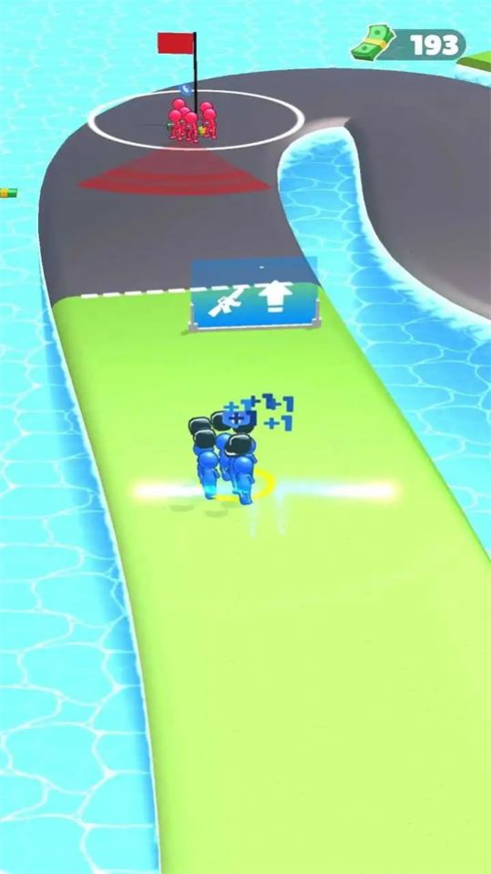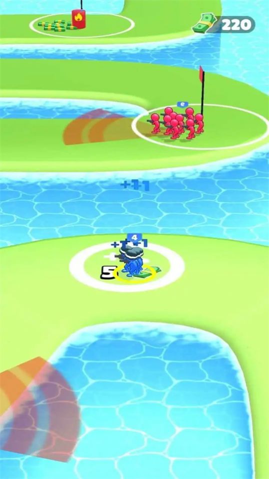 2、玩家需要操纵自己的军团在游戏的地图中奔跑射击,打倒地图中的其他士兵借此吸纳夸大自己的军团。