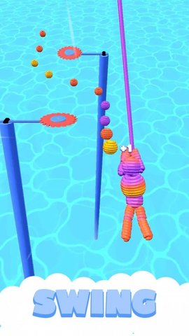 2、甚至摆动绳索,玩家通过左右滑动来避开障碍物并收集绳索,如齿轮、飞斧、墙壁,收集足够以控制游戏中的角色。