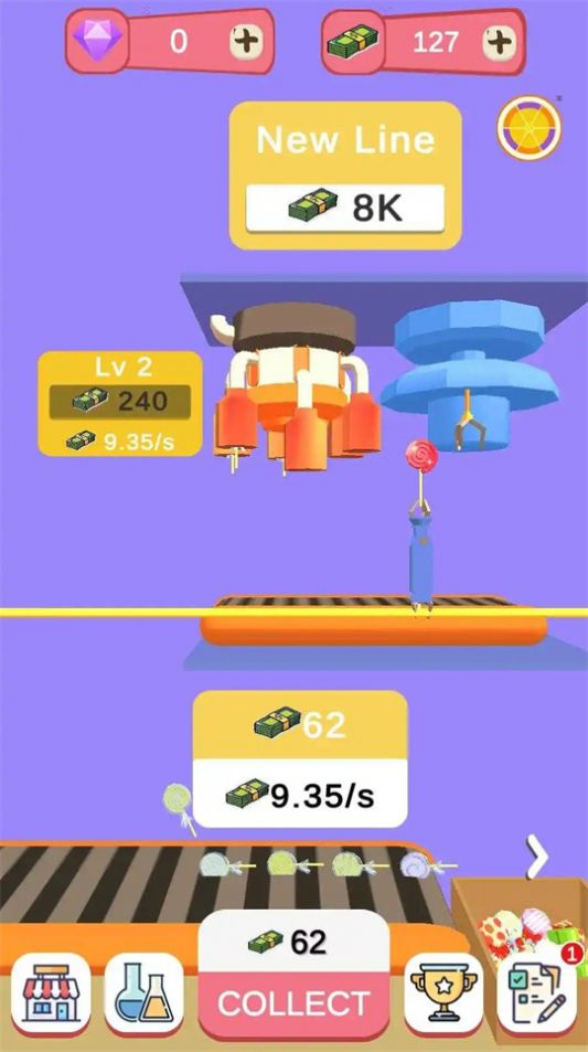 3、增加传送带,能够提升生产效率,让糖果制造的速度变得更加快,这样赚钱的速度也会更快;