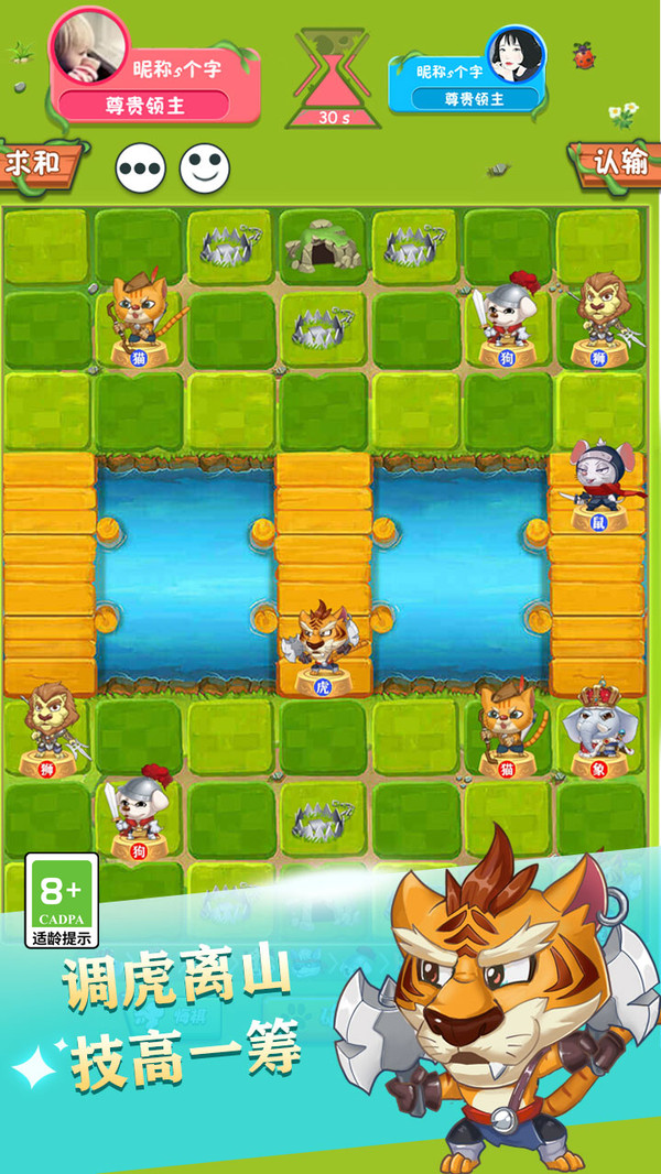 3、要想获胜,你必须占据另一边的动物窝才能获胜。狮子和老虎可以渡河,老鼠可以游过这条河。
