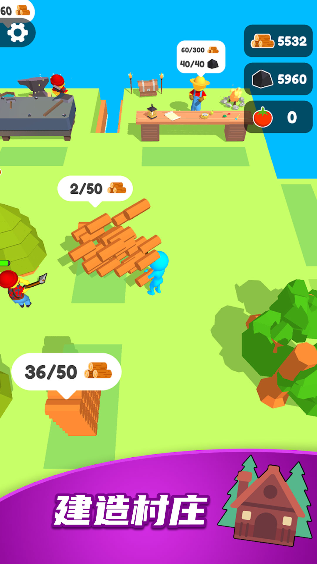 1、一款放置休闲的模拟游戏,在这里你是伐木工人,也可以是房屋的建工人。