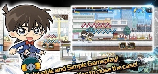 2、玩家在游戏中的任务就是控制名侦探柯南里的各个角色以闯关的方式进行跑酷挑战。