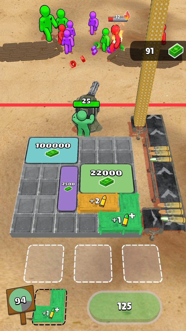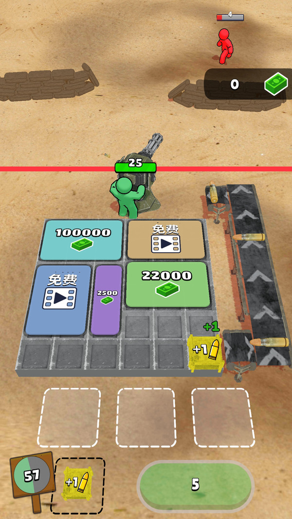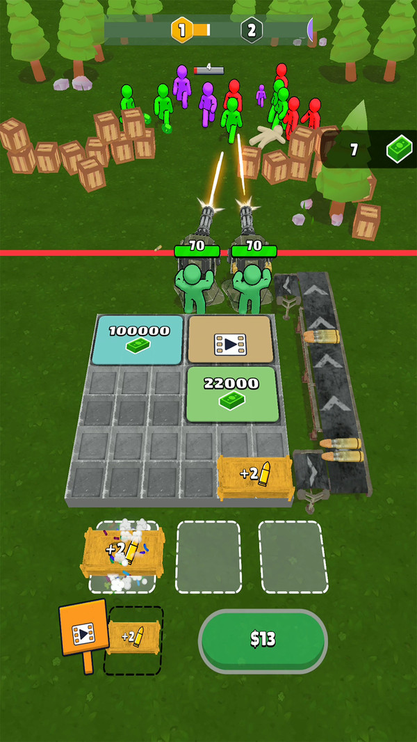 1、通过升级炮塔和解锁子弹资源等方式,不断加大火力炮轰来袭的僵尸;