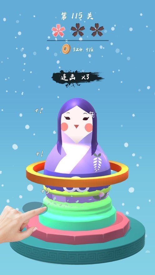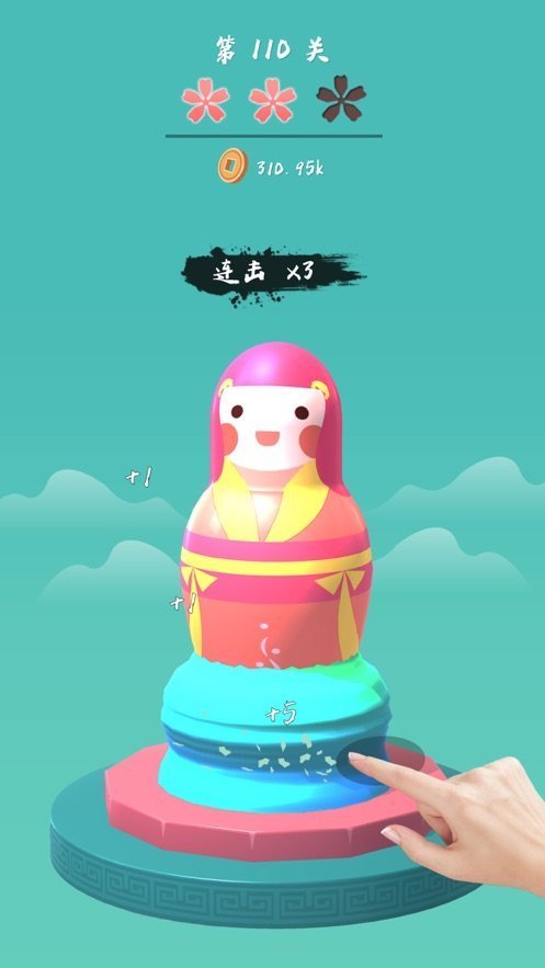 2、操作只需要一根手指头即可,玩起来非常的放松,适合所有年龄段的玩家朋友,小孩子也可以玩;