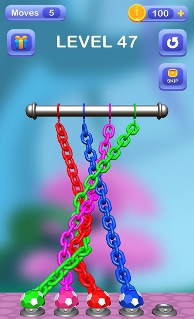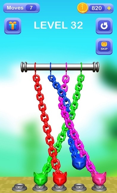 3、解开各种纠结的绳子和铁链,这是非常烧脑的游戏,看你能突破到什么水平。
