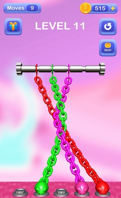3、非常趣味的解绳玩法,不同类型的链条相互交织,你需要仔细研究,找到源头。